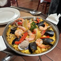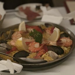 I always wanna try paella and checked out this place on google. The restaurant is at reasonable distance from west LA and reasonably priced compared with other paella restaurants in west LA.The food is great. We ordered mushroom and olives for tapas, and shrimp paella.The first serving of bread is free and comes with amazing garlic butter and diced olive spread.The staff is very friendly and comes to check if we have water frequently.The staff recommended classic paella that comes with shellfish. We def will come next time to try it.The restaurant is definitely hot in the neigh and many people are already here on Saturday night before pm. Reservations by phones are recommended by the restaurant.