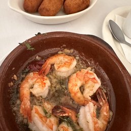 We made reservations for Saturday night, and since we were a group of people, we got seated at a big table upstairs. We tried so many different dishes: champinones con chorizo, croquetas de pollo, gambas al ajillo, calamares romano, serrano, pescado a la sal, paella marinera, paella de montana con chorizo, all so very fresh and flavorful! Oh, and the best sangria I’ve ever had! The restaurant was packed, but everyone was so cheerful and the vibe was very European.Highly recommend, this is hands down very authentic Spanish! The owner spent years in the restaurant business in Spain, and we are so fortunate to now enjoy the best paella right here in Los Angeles!